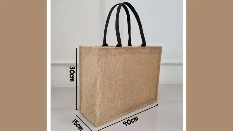 Kain goni terbuat dari serat alami yang kasar dan memiliki tekstur yang unik. Material ini menciptakan kesan elegan meskipun sederhana dan natural. Kain goni juga sering menjadi pilihan untuk bahan baku tali paper bag.
