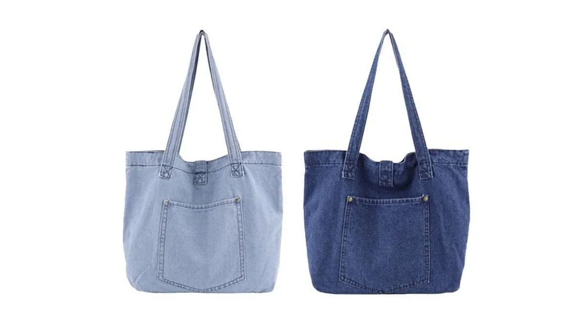 Jenis bahan tote bag lainnya adalah kain denim. Material ini juga dipakai memproduksi pakaian dan celana jeans. Kain ini kuat, tahan lama, dan stylish.
